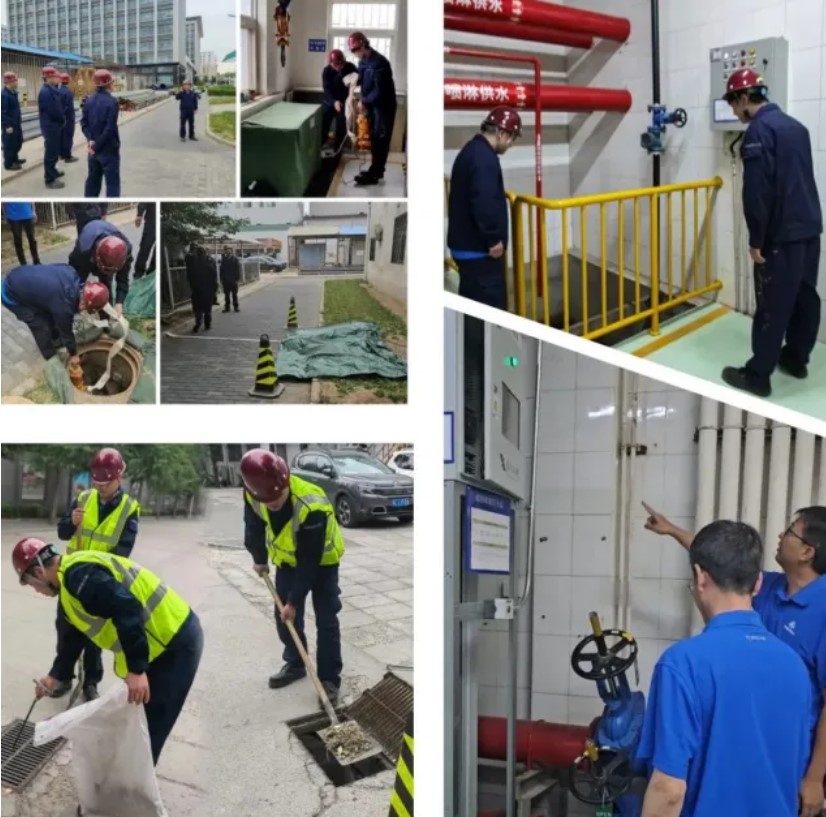對在京園區的動力站、變電站、公共食堂、地下空間、施工工地等重點防汛部位和人員密集場所進行隱患排查,增加沙袋沙箱和抽水泵配備數量,完善防雨水倒灌措施。