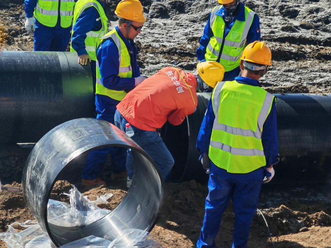 中標(biāo)喜訊傳來(lái),華創(chuàng)天元第一時(shí)間啟動(dòng)部署。運(yùn)營(yíng)管理部精準(zhǔn)調(diào)度生產(chǎn)計(jì)劃,依托數(shù)字化系統(tǒng),打造“最強(qiáng)大腦”,高效協(xié)調(diào)備貨、發(fā)貨;產(chǎn)品制造部開(kāi)啟“戰(zhàn)時(shí)動(dòng)員”,部門領(lǐng)導(dǎo)、工段長(zhǎng)、班組長(zhǎng)、技術(shù)員、操作員齊上陣,最大限度地保障開(kāi)線生產(chǎn);技術(shù)質(zhì)量部嚴(yán)格執(zhí)行“三檢”制度,確保每一根管道“零缺陷”交付;物流部精心規(guī)劃產(chǎn)品轉(zhuǎn)運(yùn)與包裝防護(hù),讓管材安全、及時(shí)地送達(dá)項(xiàng)目現(xiàn)場(chǎng);工程服務(wù)部技術(shù)人員在施工現(xiàn)場(chǎng)堅(jiān)守?cái)?shù)月,與寒風(fēng)、缺氧抗?fàn)帲源蟮亍L(fēng)霜為伴,歷時(shí)252天,圓滿完成56公里管道施工打壓試驗(yàn)任務(wù),打造了DN800規(guī)格大口徑鋼骨架管高原施工樣板工程。